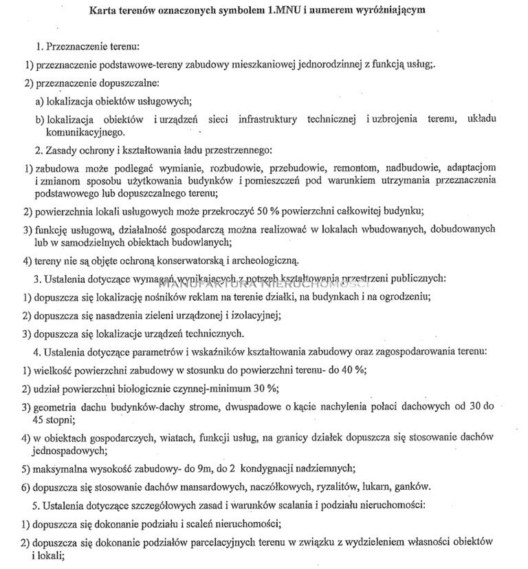 1.MNU – możliwość zabudowy mieszkaniowej oraz prowadzenia